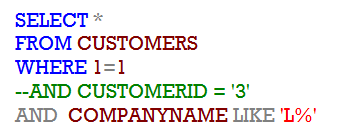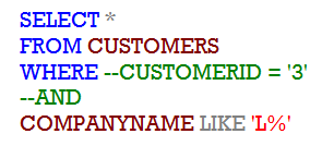 CUSTOMERID = '3'인 조건행을 잠시 주석처리하고 싶어요.