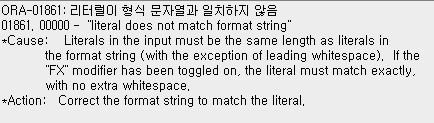 ORA-01861: 리터럴이 형식 문자열과 일치하지 않음