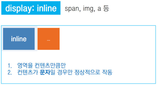 a태그, img태그, span태그 등은 display의 속성을 inline으로 기본값으로 가지고 있구요.